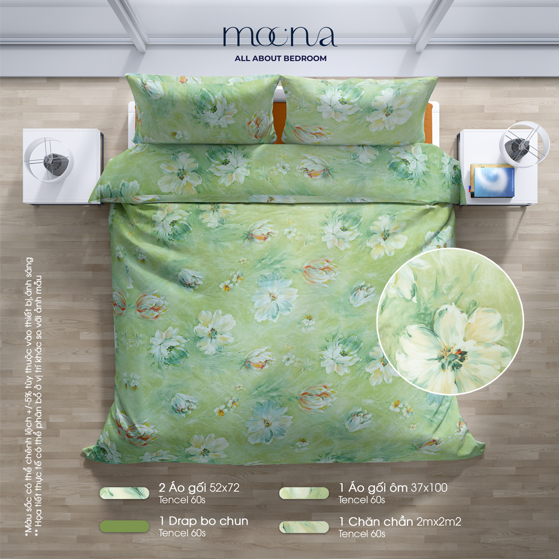 - Xuất xứ: Thiết kế và sản xuất tại Việt Nam bởi Moona Bedding